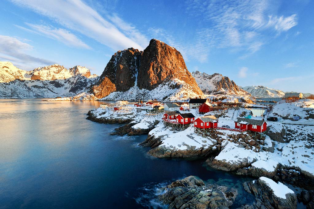 Hamnøy is a picturesque village located in the Lofoten Islands of Norway, renowned for its dramatic landscapes and traditional red fishing cabins, known as rorbuer. Surrounded by towering peaks and crystal-clear waters, Hamnøy offers stunning views of the rugged coastline, making it a popular destination for photographers, hikers, and nature enthusiasts.